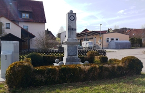 Denkmalstele für beide Weltkriege am Ortseingang.