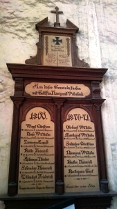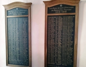 historischen Gebäudeteil wurden die vier hölzernen Gedenktafeln für die Toten des ersten
