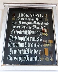 Gedenken an die Einigungskriege vor der Eiche angebracht, die direkt vor dem Eingang zum Kirchhof
