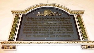 Der Gedenkstein für die Kriegsopfer wurde erst nach 2011 aufgestellt. Das in der Kirche