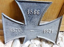 gelagerte Eiserne Kreuz mit der Inschrift 1866 – 1870 – 1871 war früher auf einer Stele zum