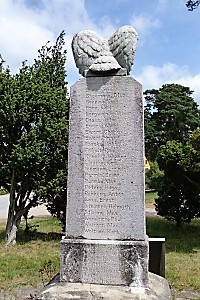 Vor dem Denkmal war eine Tafel mit den Namen der Kriegstoten von 1939 bis 1945 aufgestellt.