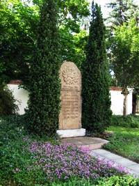 Steindenkmal für den 1. Weltkrieg in Sichtweite der Kirche. Während Namen und Todesdatum restauriert wurden, sind die Todesorte kaum oder gar nicht mehr lesbar.