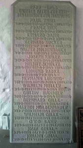 Stein-Gedenktafel für die Gefallenen des 1. Weltkriegs in der Kirche könnte an diesem Denkmal