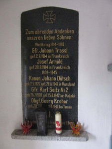 Gedenktafel in der Kapelle in der Ortsmitte.