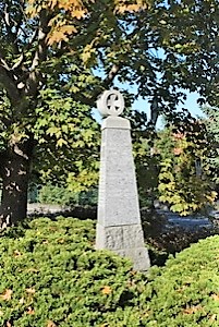 Im Dorfzentrum steht eine dreiseitige Stele aus hellem Granit für die Gefallenen beider