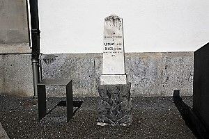Gedenkstein und Hinweistafel bei der Kirche St. Martin