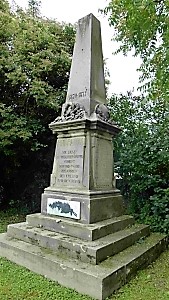 Neben der Kirche Saint Morandus ein Obelisk zum Gedenken an die im dortigen Lazarett verstorbenen und hier bestatteten deutschen und französischen Soldaten des Krieges 1870/71
