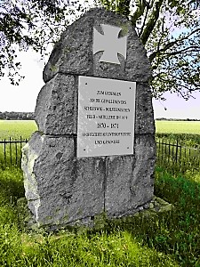 Vom Schleswig-Holsteinischen Feldartillerie Regiment Nr. 9 starben im Feldzuge 1870/71 den Heldentod: 10 Offiziere, 103 Unteroffiziere und Kanoniere. Verwundet wurden: 25 Offiziere, 2 Sanitätsoffiziere, 307 Unteroffiziere und Kanoniere. In Dankbarkeit von Angehörigen und Freunden des Regiments errichtet und dem Feldartillerie Regiment General Feldmarschall Graf Waldersee (Schleswigschen) Nr. 9 am 18. August 1905 gewidmet. Ihr braven Krieger ruhet in Frieden!