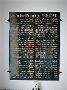 Die schwarze Marmortafel hängt im Vorraum der katholischen Wallfahrtskirche Mariä Himmelfahrt.