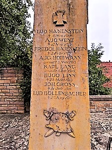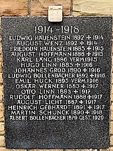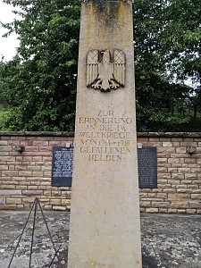 Mauer: DEN TOTEN HELDEN Stele: (Adler) ZUR ERINNERUNG AN DIE IM WELTKRIEGE VON 1914-1918 GEFALLENEN HELDEN