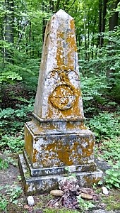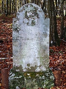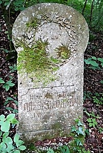 Alte Kriegsgräberstätte und Denkmal des Infanterie Regiments Nr. 24 im Wald von Herbebois bei Azannes. Obelisk mit verzierter Umrandung aus Stein (nur noch Reste vorhanden) und ein erhaltener lesbarer Grabstein. In der Nähe Grabstein eines Angehörigen des Infanterie Regiments Nr. 64