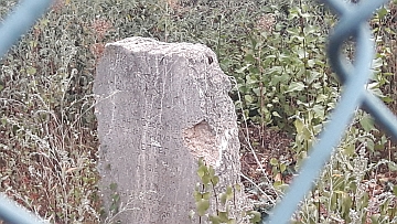 Grob behauener Stein, grabsteinartig, ehemaliger Hain (Efeu) erkennbar, Schriftseite geschliffen. Beschädigung der ersten und zweiten Schriftzeile jeweils am Ende, Bruchstück mit restlichen Buchstaben vorhanden. Das Denkmal steht in an der Ecke Hannoversche Straße, Gothaer Landstraße, schräg gegenüber dem Einkaufsmarkt auf ehemals zugewachsenem und vor einiger Zeit teilweise beräumten Grundstück, ca. 20m östlich von ehemaligem Lager- bzw. Speicherturm.