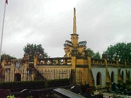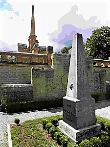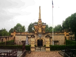 Deutsche Kriegsgräberstätte des Krieges 1870/71, Beinhaus in Form einer reich verzierten kleinen Festung, gekrönt von einem hohen Obelisken an dem vier Metall-Särge angebracht sind, im umzäunten Hof davor ein weiterer Obelisk mit Inschrift. Ein Eingangstor verschließt den Weg zur Gruft (geöffnet zu bestimmten Uhrzeiten).