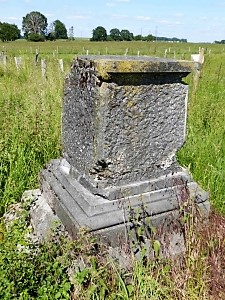 Beaumont (völlig zerstört). Ehemals Obelisk auf einem Quader mit Namenstafeln. In
