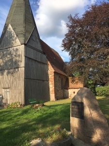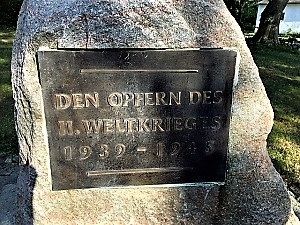 Below, Gemeinde Techentin, Landkreis Ludwigslust-Parchim, Mecklenburg-VorpommernPLZ 19399 Neben der Dorfkirche steht ein Denkmal für die Opfer des zweiten Weltkrieges. Ein Findling trägt eine schwarze Steintafel mit Inschrift (ohne Namen).