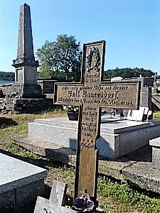 Auf der Festung Bitsch eine Metallgedenktafel, und auf dem Friedhof des Ortes deutsche