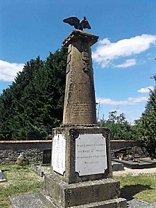 Auf dem katholischen Friedhof befindet sich nur ein Einzelgrab (kleiner Sockel mit verziertem Eisenkreuz). Auf dem evangelischen Friedhof befindet sich ein sehr ansehnliches Ensemble aus einem Denkmal mit wuchtiger Säule und krönendem Adler für die dort ruhenden Gefallenen. Flankiert wird der Eingang dazu von zwei Obelisken für die gefallenen Hauptleute von Klüfer und von Wahl. Ergänzende Daten bei den Mannschafts-Dienstgraden aus den offiziellen Verlustlisten. Zusätzliche Informationen in Blau vom Volksbund Deutsche Kriegsgräberfürsorge: www.volksbund.de/graebersuche