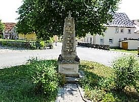 Das Kriegerdenkmal steht im Dorfmittelpunkt. Eine konisch zulaufende viereckige Steinstele, mit deutschem Kreuz als Abschluss. An den Seiten sind Marmortafeln eingelassen.
