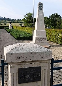 Die kleine Kriegsgräberstätte von Chicourt birgt vorn französische Gräber mit einem Obelisken als Denkmal. Dahinter ruhen deutsche Soldaten in einem Massengrab mit Metalltafel. Davor steht ein Denkmal in Form einer Stele mit krönendem Eisernen Kreuz.