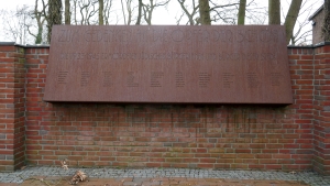 1979 am Friedhofseingang in der Syker Straße errichtetes Mahnmal. Gedenktafel mit den Namen der 1933-1945 ermordeten Einwohnern der Stadt.