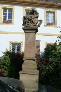 Gefallenendenkmal beim Rathaus (Remigiusstraße 2). Nach 1920 errichtet. Darstellung des Heiligen Georg zu Pferde im Kampf mit einem Drachen. Dazu eine in der Wand des Rathauses eingefügte Tafel mit 64 Namen der Gefallenen, Verstorbenen und Vermissten. Weitere im Krieg gebliebene Gemeindemitglieder, die nicht namentlich auf der Tafel genannt werden, wurden in der nachfolgenden Aufstellung rot markiert.