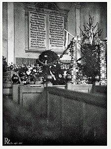 Die Gedenktafel für die Gefallenen des 1. Weltkrieges befand sich im Innern der Kirche. Diese wurde