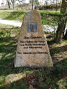 Eberswalde (Familiengarten - ehem. Bahnhof Eisenspalterei), Landkreis Barnim, BrandenburgPLZ 16227 Gedenkstein (fast dreieckig) mit aufgesetzter Schrift und Bildnis einer Familie; keine Namen