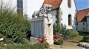 Denkmal vor der Simultankirche St. Stephanus.
