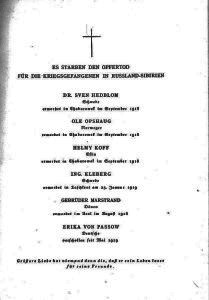 Es starben den Opfertod für die Kriegsgefangenen in Russland-Sibirien (Namen) Größere Liebe hat niemand denn die, daß er sein Leben lasse für seine Freunde.