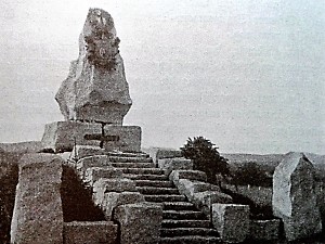 Das Denkmal wurde am 10.05.1900 eingeweiht. Auf dem alten Foto der Regimentsgeschichte sieht man noch keinerlei Bäume. Heute wird das Denkmal förmlich eingezwängt zwischen zwei mächtigen Eichen, die schon viele Steine zur Seite gedrückt und einige Namen von Schlachtorten auf den Steinen überwuchert haben. Der obere Felsblock hatte früher auch noch mehr Verzierungen um das herzogliche Wappen.