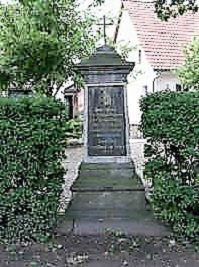 Das Sandstein-Denkmal an der Hauptstraße für die 1945 im Ort gefallenen Soldaten