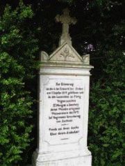 Denkmal: Zur Erinnerung an die in der Schlacht bei Sedan am 1. Septbr. 1870 gefallenen und in Lazarethen zu Floing, Vrignes-aux-bois, S. Menges u. Donchery ihren Wunden erlegenen Weimeranern des 94sten Inf. Regiments Grossherzog von Sachsen. -.-.- Friede sei ihrer Asche. Ehre ihrem Andenken! -.-.-