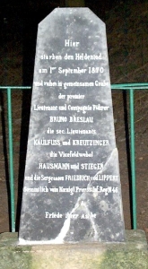 Grab im Wald westl. Floing: Hier starben den Heldentod am 1. September 1870 und ruhen im gemeinsamen Grabe (Namen) Saemtliche vom Königl. Preuss. Inf. Regt. No. 46 Friede ihrer Asche