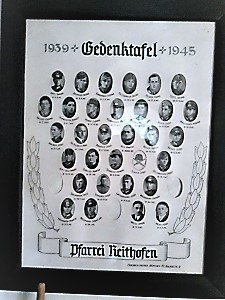 Gedenktafel 1939-1945, Pfarrei Reithofen. Im Vorraum der Kirche in Forstern ein gemalte Tafel