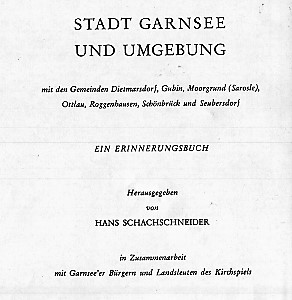 Stadt Garnsee und Umgebung mit den Gemeinden Dietmarsdorf, Gubin, Moorgrund (Sarosle), Ottlau, Roggenhausen, Schönbrück und Seubersdorf, Ein Erinnerungsbuch, Hans Schachschneider, Verlag Wendt Groll GmbH, Herford 1970