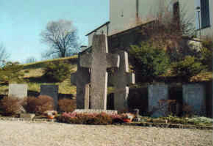 Denkmal nordwestlich der Pfarrkirche Maria Himmelfahrt; vier Gedenktafeln, in der Mitte