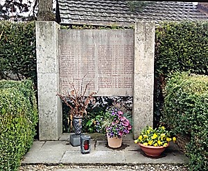 Denkmal und Einzelgedenken auf dem Friedhof bei der katholischen Pfarrkirche St. Maria Magdalena.