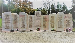 Mahn-und Gedenkstätte auf dem Geschwendaer Waldfriedhof. Im Jahr 2014 durch die Ortsgruppe Kriegsgräberfürsorge und Heimatvertriebene erstellt (neun Stelen).