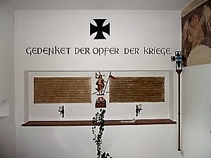 Zwei Namenstafeln Linke Tafel: Gedenket der gefallenen