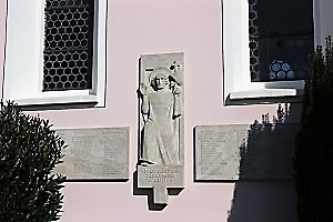 Gedenktafeln aussen an der Kirche; zusätzlich Hinweise zu Soldaten von privaten Gedenksteinen
