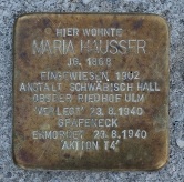eingewiesen 1902 Anstalt Schwäbisch Hall Oberer Riedhof Ulm, verlegt 23.08.1940 Grafeneck, ermordet