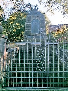Der Platz ist umgeben von einer Sandsteinmauer mit eingelassenem Eisengitterzaun.