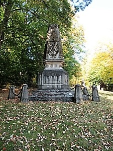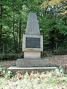 des 2. Weltkrieges. Dort stehen zwei Denkmäler: 1.) Eine reich verzierte Steinstele auf