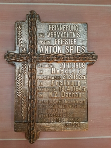 Wandplakette in der Pfarrkirche St. Vitus in Heckfeld für den 1945 im KZ Dachau