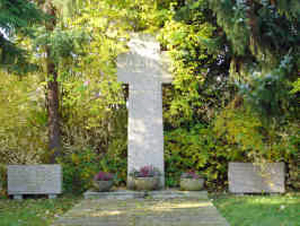 Im Kirchgarten, über eine Treppe von der Bundesstraße 85 aus zu erreichen. In der Mitte eines offenes Vierecks ein 310 cm hohes Steinkreuz. Auf zehn stehenden Granitsteinplatten die Namen der Toten.