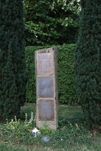 Im Friedhof; Steinsäule mit drei Kupfertafeln