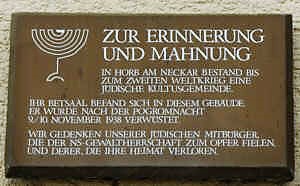 Zur Erinnerung und Mahnung. In Horb am Neckar bestand bis zum zweiten Weltkrieg
