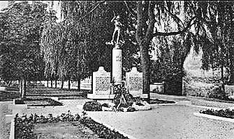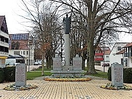 Kriegerdenkmal 1914/18 und 1939/45 am Martinsplatz, erbaut 1930, Engelsstatue von 1962; Aussehen 1930 siehe historisches Bild (www.illertissen.de/Weitere-historische-Bilder.o7127)