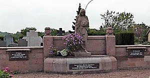 Ingersheim (Kriegsgräberstätte 1. Weltkrieg), Département Haut-Rhin, FrankreichPLZ 68040 Deutsch-Französische Kriegsgräberstätte für Gefallene des 1. Weltkriegs. Geflügeltes Grabdenkmal mit trauernder Frauenfigur und Gedenktäfelchen. Davor zwei Reihen mit französischen Einzelgräbern und Massengräbern.